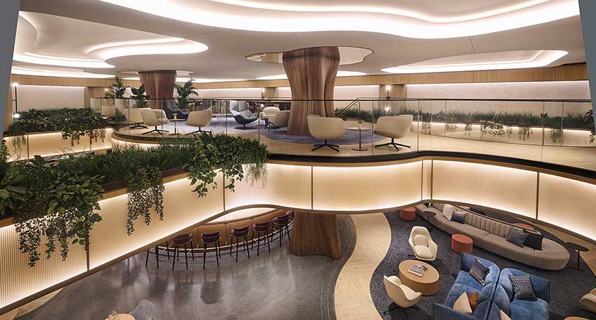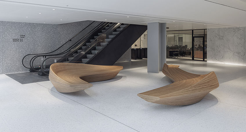 Real wood veneer transforms a commercial space into a highly inspirational environment.