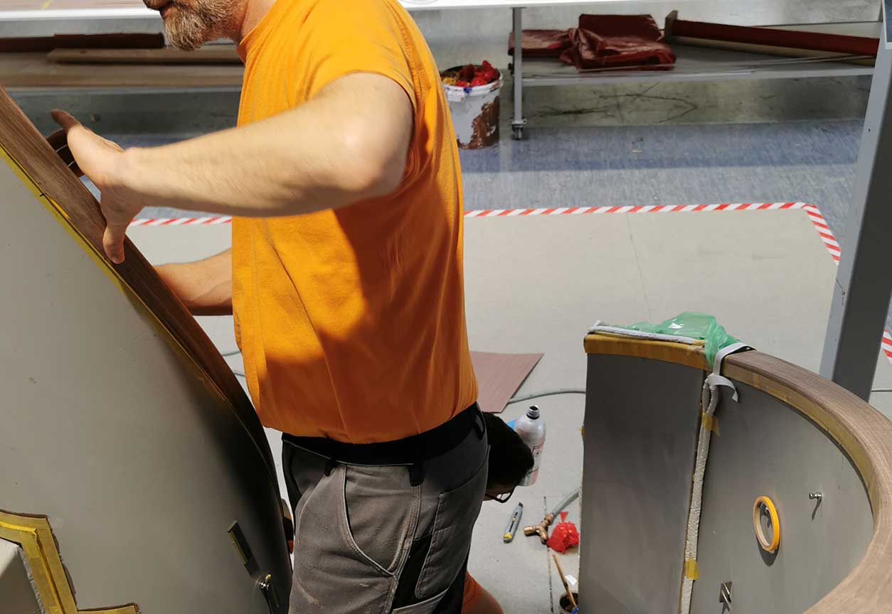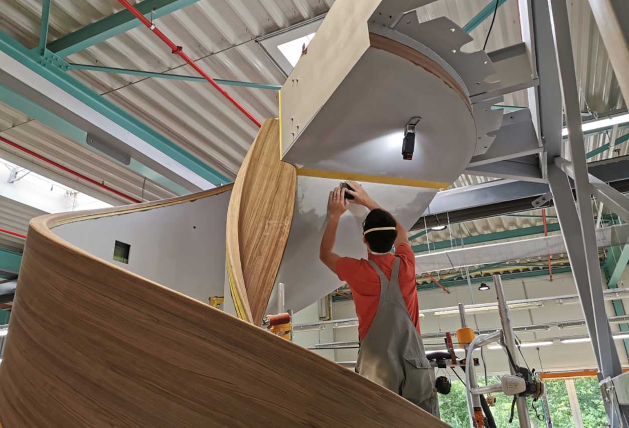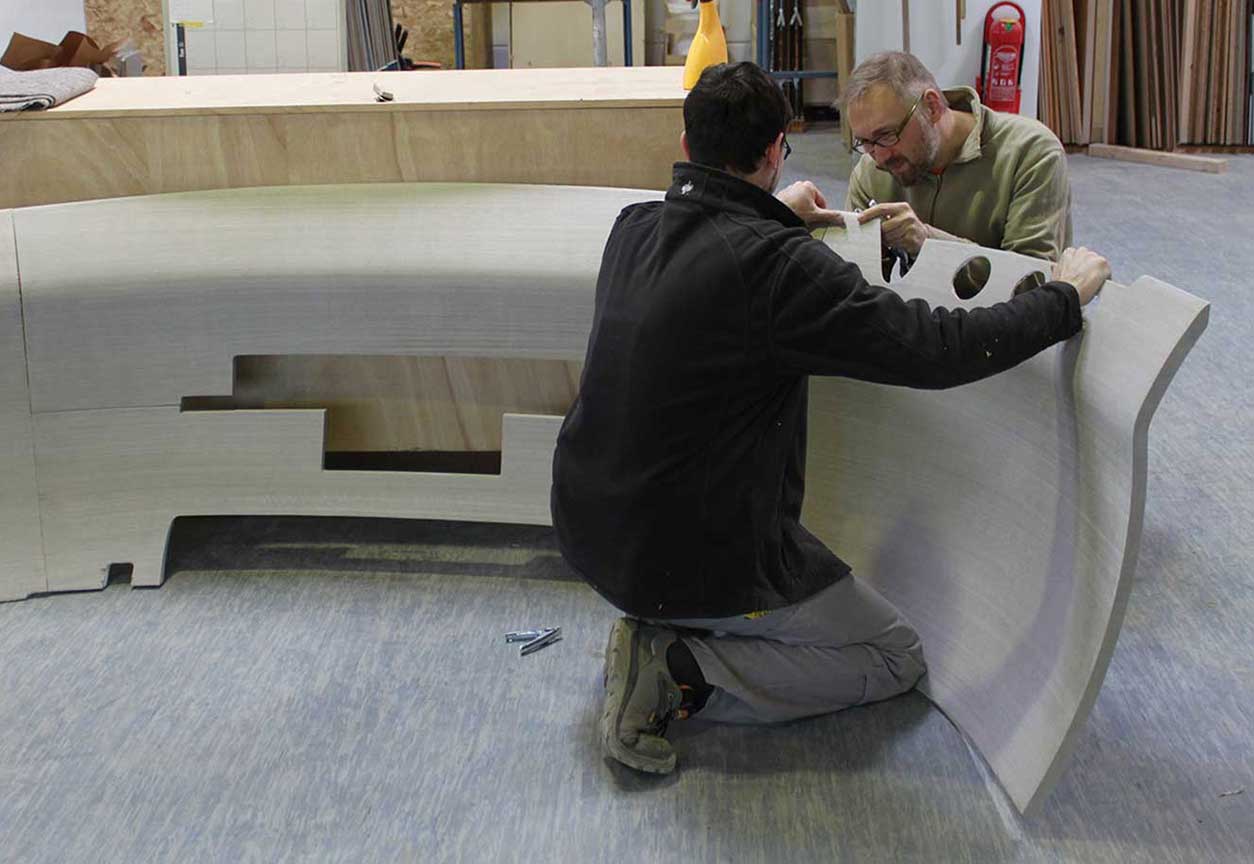 3D-Veneer uses a revolutionary in-house process on an industrial scale that allows the moulding of veneer three dimensionally without cracking. Both the structure of the wood and the texture of the veneer are unchanged in the process.
