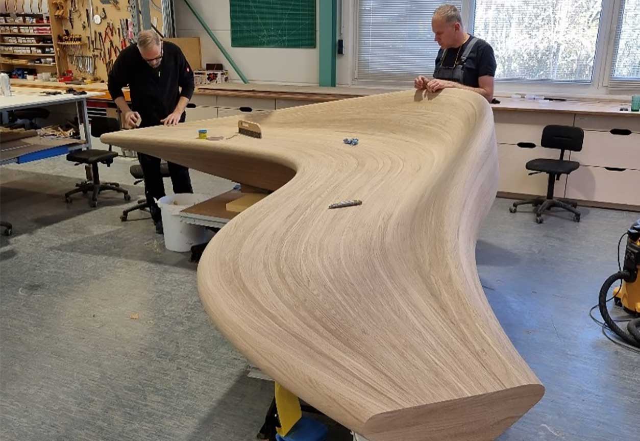 We have developed a process that pushes the limitations of how we bend and form veneer. With 3D-Veneer technology the wood’s structure and veneer’s texture remains unchanged allowing us to create more organic designs to match your vision.